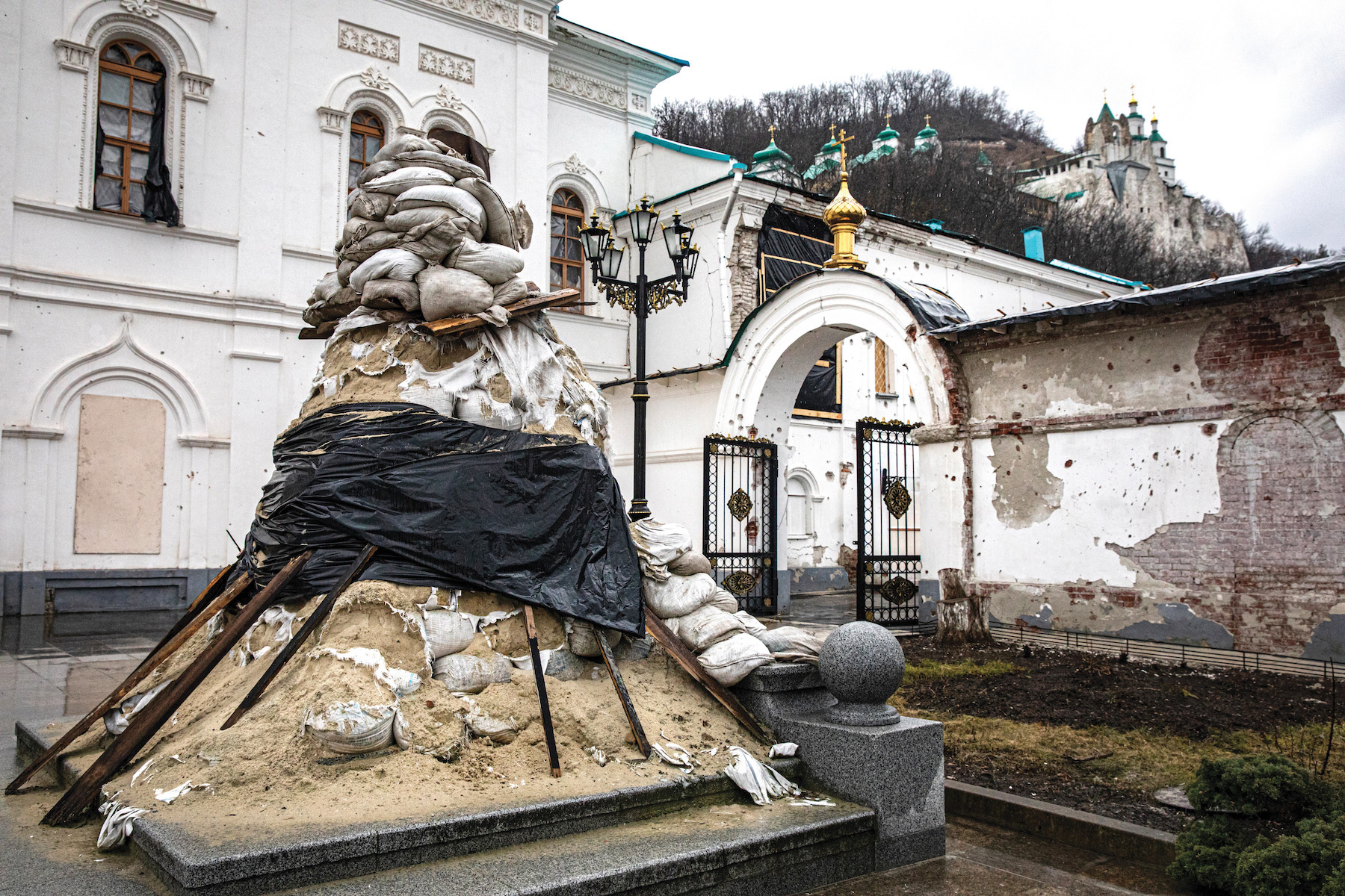 Sviatohirsk Monastery of the Caves in Donetsk Oblast, Ukraine, was shelled within weeks of Russia’s invasion and then again in May and June 2022. Shelling in the first five days of June 2022 destroyed churches and buildings, killing five monastics and three lay monastery employees, according to the monastery website. At the time, the monastery was functioning as a shelter for some 450-500 refugees.